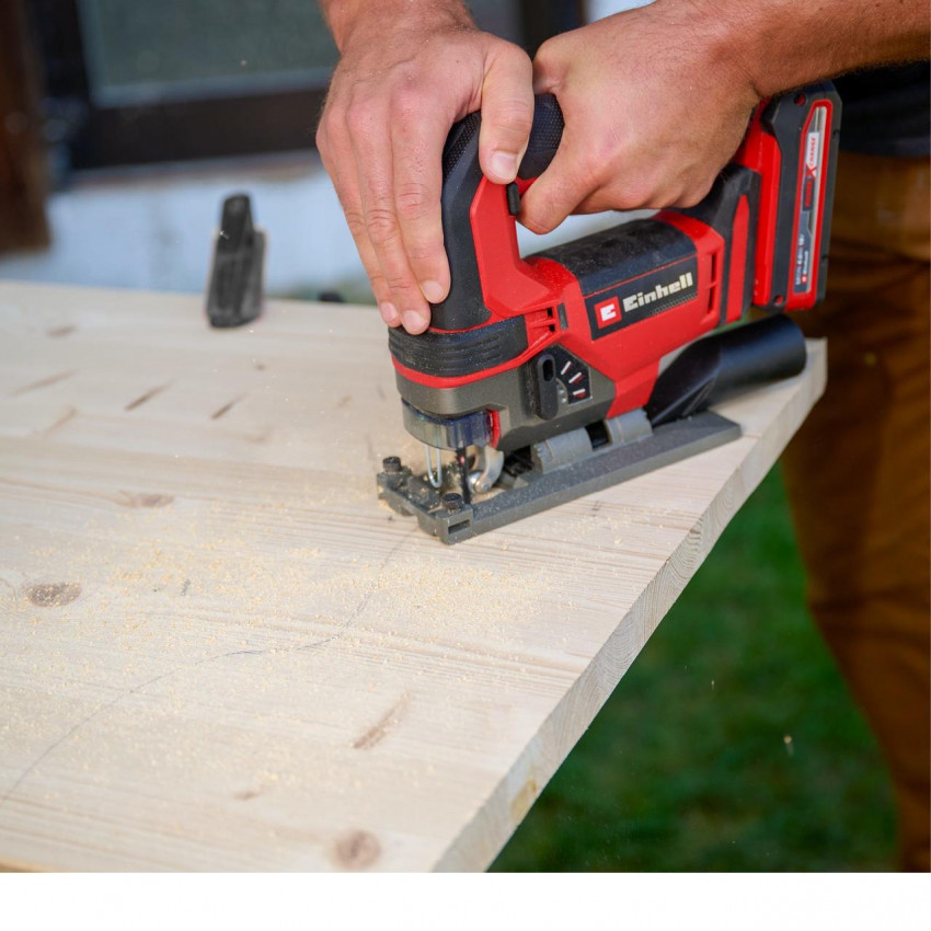 Акумуляторний лобзик Einhell TE-JS 18/100 Li-Solo – це компактний лобзик для точного різання різних матеріалів. Як представник сімейства Power X-Change, він може використовуватися в поєднанні з будь-яким акумулятором або зарядним пристроєм із системи. Завдяки високій плавності ходу акумуляторний лобзик забезпечує точні різи. Для швидших різів можна ввімкнути маятниковий хід, завдяки якому пильне полотно рухається не лише вертикально, але й горизонтально вперед. Потужний акумуляторний лобзик може виконувати різи глибиною до 100 мм у деревині та 12 мм у сталі, а також робити скошені різи до 45°. Він також оснащений зручним індикатором лінії різу та світлодіодним підсвічуванням зони різу. Електронне регулювання швидкості дозволяє ідеально підібрати інструмент до матеріалу та завдання. Тримач пильного полотна без інструментів дозволяє швидко та легко змінювати пильне полотно. Лобзик можна використовувати з усіма стандартними пилковими полотнами з U-подібним та T-подібним хвостовиком. Оптимальна видимість під час роботи забезпечується функцією здування пилу та адаптером для всмоктування, який можна підключити, наприклад, до пилососа для вологого/сухого прибирання Einhell за допомогою роз'єму Ø 36 мм. Пластиковий чохол для подошви, інтегрований у міцну подошву пилки, захищає делікатні заготовки та запобігає подряпинам. Захист від сколів забезпечує розрізи без розривів. Для особливо прямих розрізів до лобзика можна прикріпити паралельну напрямну, що входить до комплекту. У комплект входить одне полотно лобзика для дерева. В комплект поставки не входить акумулятор та зарядний пристрій.
