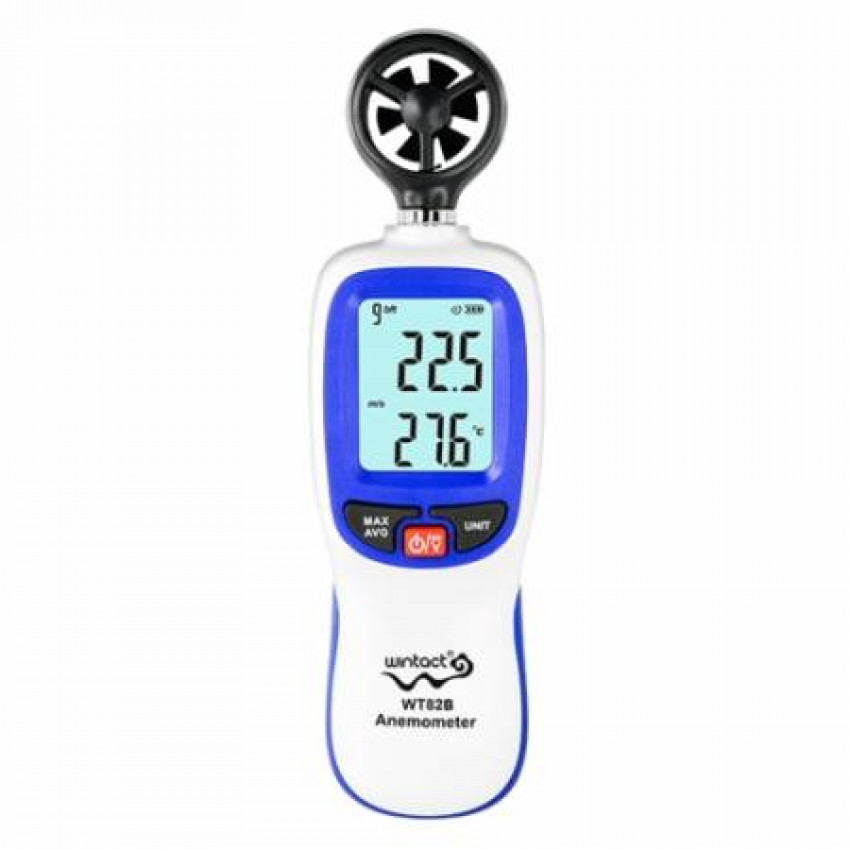 WT82B - крильчатий анемометр виробництва компанії Wintact, призначений для вимірювання швидкості повітря в діапазоні від 0 до 30 м/с з функцією обчислення середнього значення, утриманням максимального і поточного значень. Вимірювання температури виконується в діапазоні від -10 до 45 ºC.