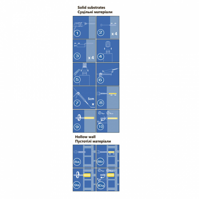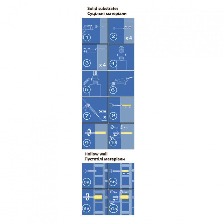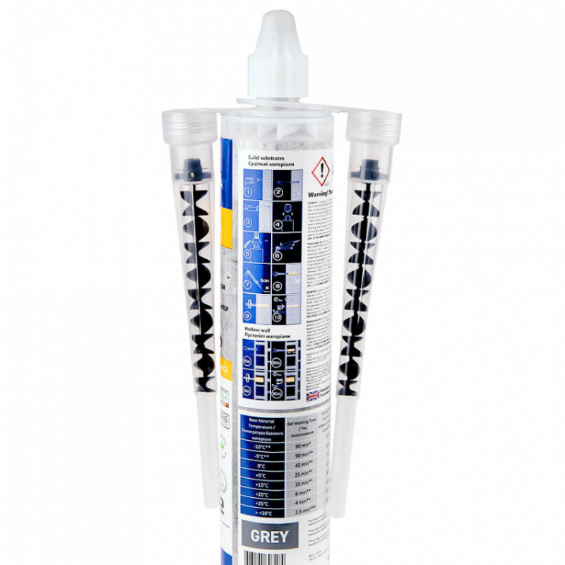 Об’єм картриджа 300 мл.; Температурний режим (Т) -10 - + 40°C.; Застосування з метричної шпилькою від М10 до М30.; Застосування з арматурним прутом від D10 до D32.; Використовується з будь-яким звичайним пістолетом для герметика.