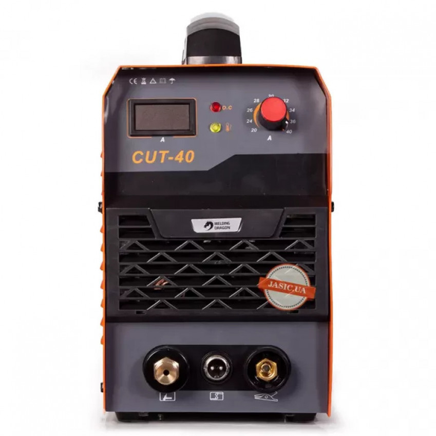 Опис Welding Dragon CUT-40 - це інверторний апарат для повітряного плазмового різання. Застосовується для ручного різання конструкційних матеріалів, які проводять струм (різні види сталей, мідні та алюмінієві сплави тощо). В основі інверторної схеми IGBT транзистори, завдяки яким апарат маленький, легкий і при цьому надійний в роботі. Апарат зібраний у міцному металевому корпусі. На верхній кришці ручка для зручності перенесення.