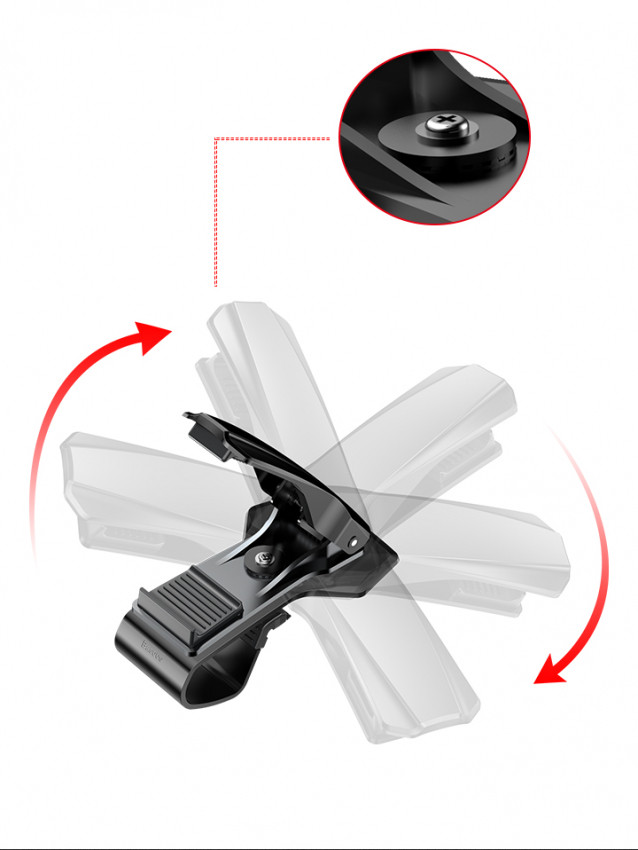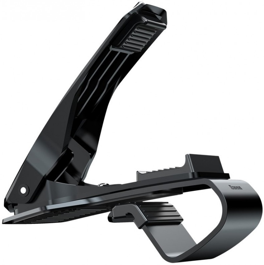 Baseus Mouth- автомобільний тримач для смартфонів і навігаторів з діагональю до 7” або 285 мм. Автоутримувач розроблений для тих, хто цінує безпеку при водінні автомобіля. Але варто врахувати, що для встановлення тримача козирок повинен мати завдовжки не менше 1.5 см. Автомобільний тримач Baseus має форму затиску, тому встановлений в ньому гаджет не випаде при їзді по нерівній дорозі. Установка автотримача займає всього кілька секунд - розтиснути затиск і встановити на торпеду.При необхідності власник можна повернути до пасажира - у конструкції є шарнірне кріплення, що дозволяє обертати його на 360 градусів.
