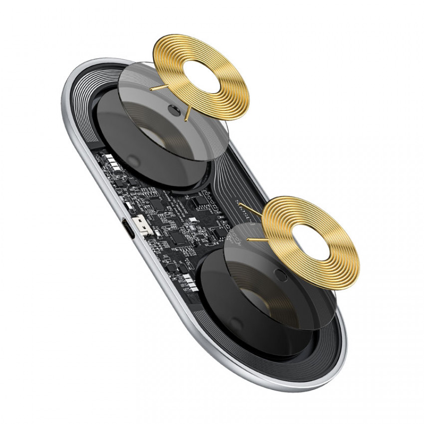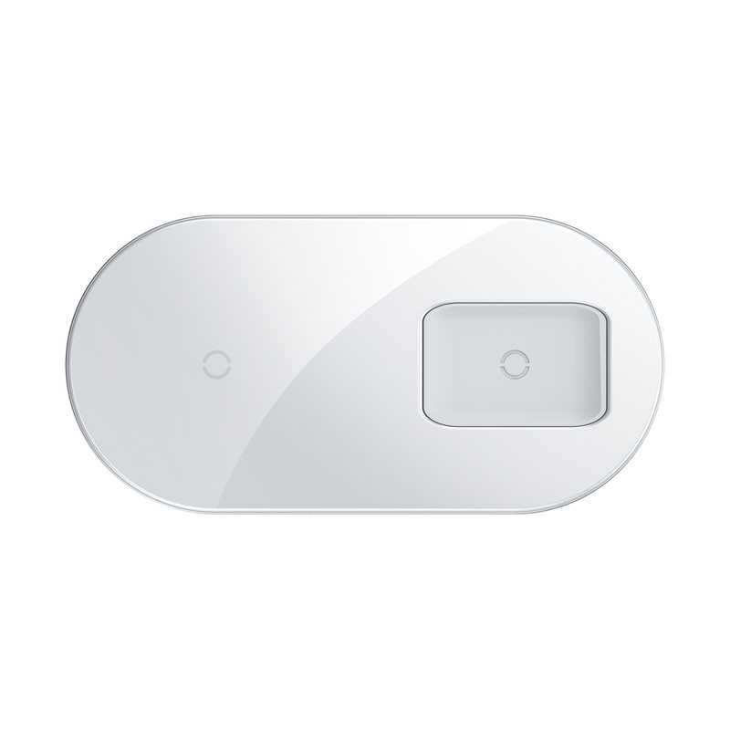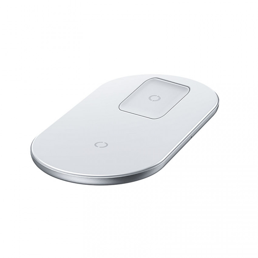 Бездротове зарядний пристрій Baseus Simple 2in1 підходить для одночасної зарядки двох смартфонів, або смартфона і навушників Apple AirPods Pro.
