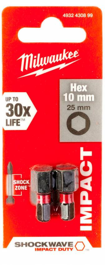 Біта SHOCKWAVE MILWAUKEE, Hex10, 25мм, (2шт)
