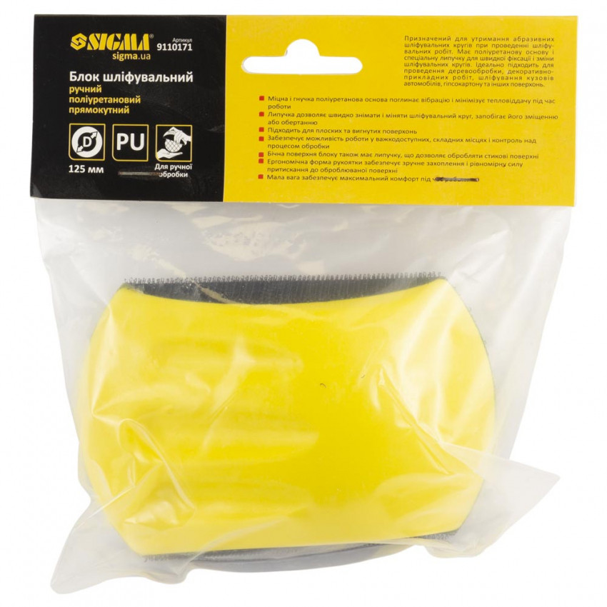 Про товар Блок шліфувальний ручний поліуретановий Ø125мм з липучкою (прямокутний) SIGMA (9110171)