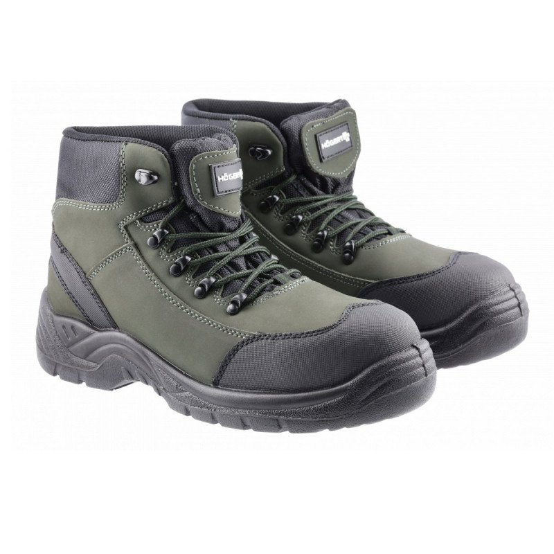 Чоловічі черевики, виготовлені відповідно до стандарту, що визначає вимоги до захисного взуття ISO 20345:2011. Третій клас індивідуального захисту. Високоякісна обробка волової шкіри забезпечує зручність та високий комфорт використання. Взуття оснащене композитним підноском, що захищає пальці ніг, а кевларова вставка підошві захистить від проколу. Це дозволяє працювати на поверхнях із гострими виступаючими предметами. Завдяки підошві, що не ковзає, взуття ідеально підходить для ходьби по нерівних і слизьких поверхнях. Антистатичні властивості гарантують безпечне використання черевиків як у сухому, так і у вологому середовищі. Взуття рекомендується у промисловій, логістичній, транспортній та будівельній областях. Ідеально підходить для зовнішніх робіт.