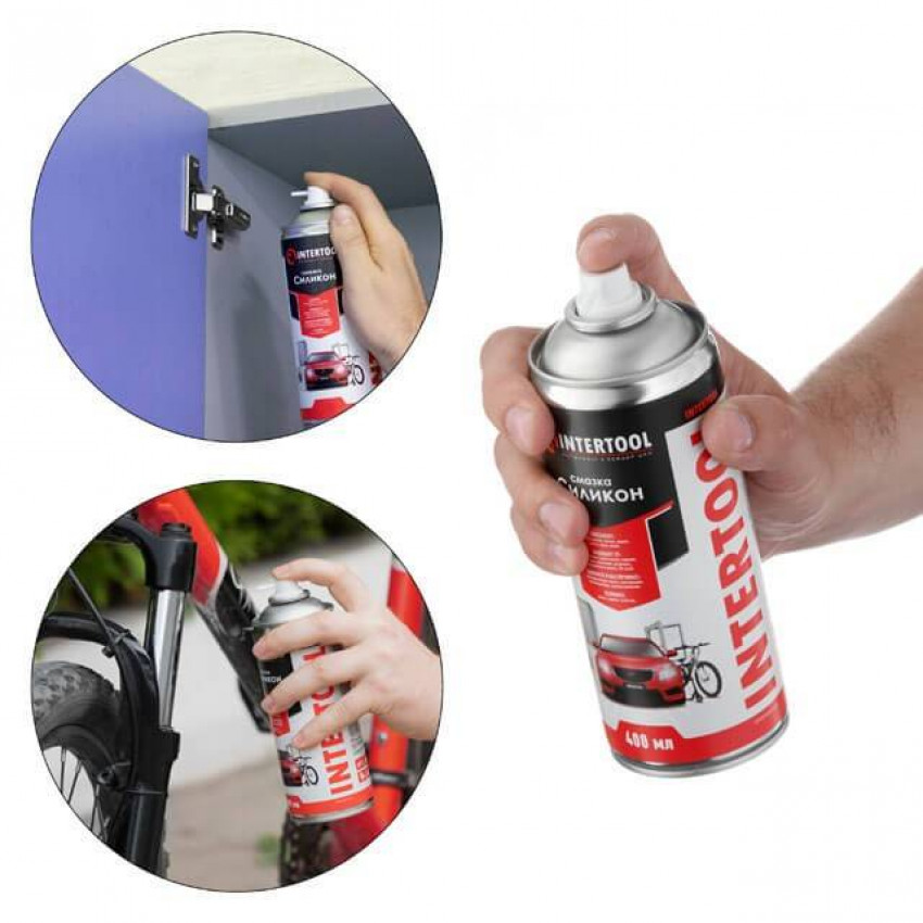 Мастило-спрей "Силікон" – це універсальний засіб для надійного та довговічного захисту від зносу деталей, що рухаються та труться. Мастило INTERTOOL FS-6040 не змивається водою та створюють надійну плівку на поверхні. Завдяки своїм унікальним властивостям використовується як у домашніх, так і в професійній цілях.
