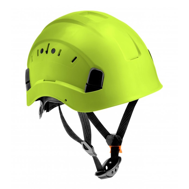 Захисна каска DIMEL із сучасним спортивним профілем створена для вимогливих користувачів у будівельній та промисловій галузях. Корпус із АБС-пластику забезпечує високу механічну міцність і стійкість до суворих умов експлуатації. Модель обладнана регульованою системою вентиляції, регулювальним коліщатком, зручним вирізом для шиї та три-точковим ремінцем під підборіддя, що гарантує функціональність і безпеку. Завдяки тримачам і отворам для інтеграції з іншими ЗІЗ (навушниками, ліхтариками тощо) каска може бути адаптована для використання в різних умовах підвищеної небезпеки.