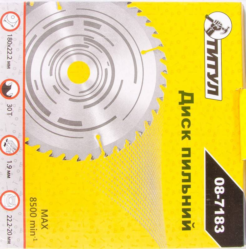 Відгуки Диск пильний для дерева ТИТУЛ із твердосплавними напайками 180х22.2х30Т адаптер 22.2-20 08-7183