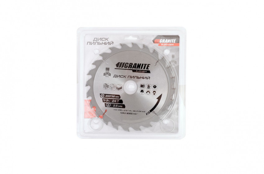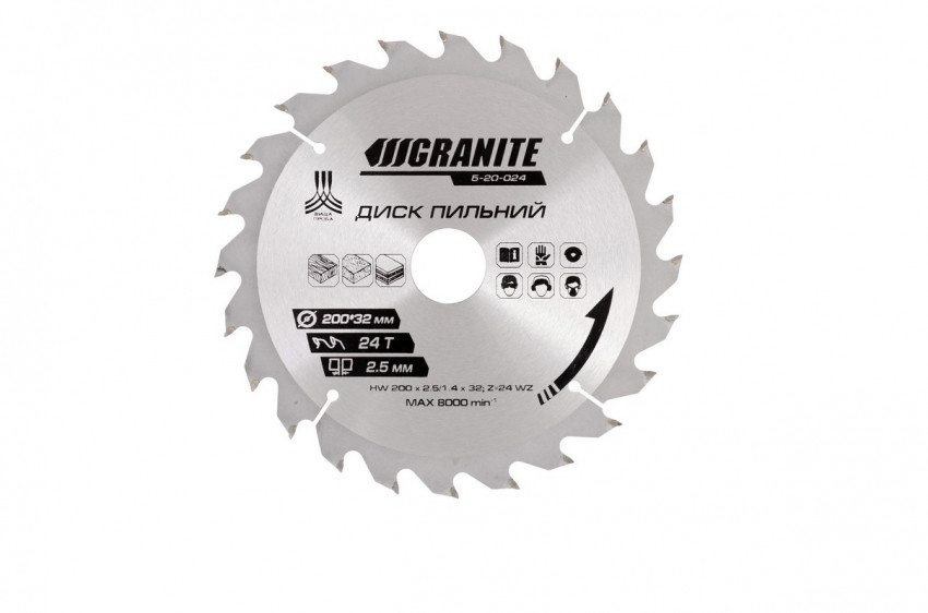 Відгуки Диск пильний GRANITE для дерева з твердосплавними напайками 200х32х24Т адаптер 32-30/32-25.4 8000 об/хв 5-20-024