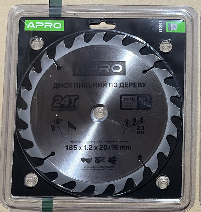 Диск пильний по дереву 185х20(16)х24Т APRO