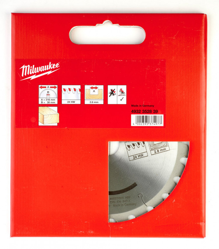 Диск пиляльний по дереву для торцювальних пил MILWAUKEE, діаметр 216х30х2,8мм, 24 зуб.