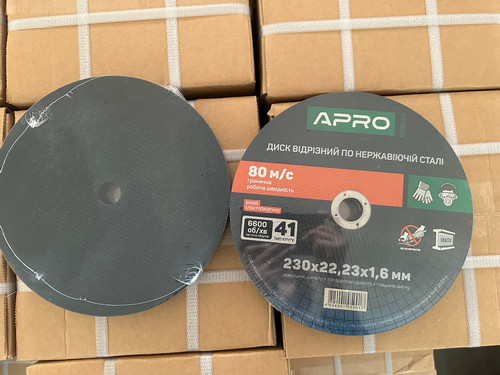 Диск відрізний по нержавіючій сталі (INOX) 230х1.6х22.2мм (5шт. в пач.) APRO