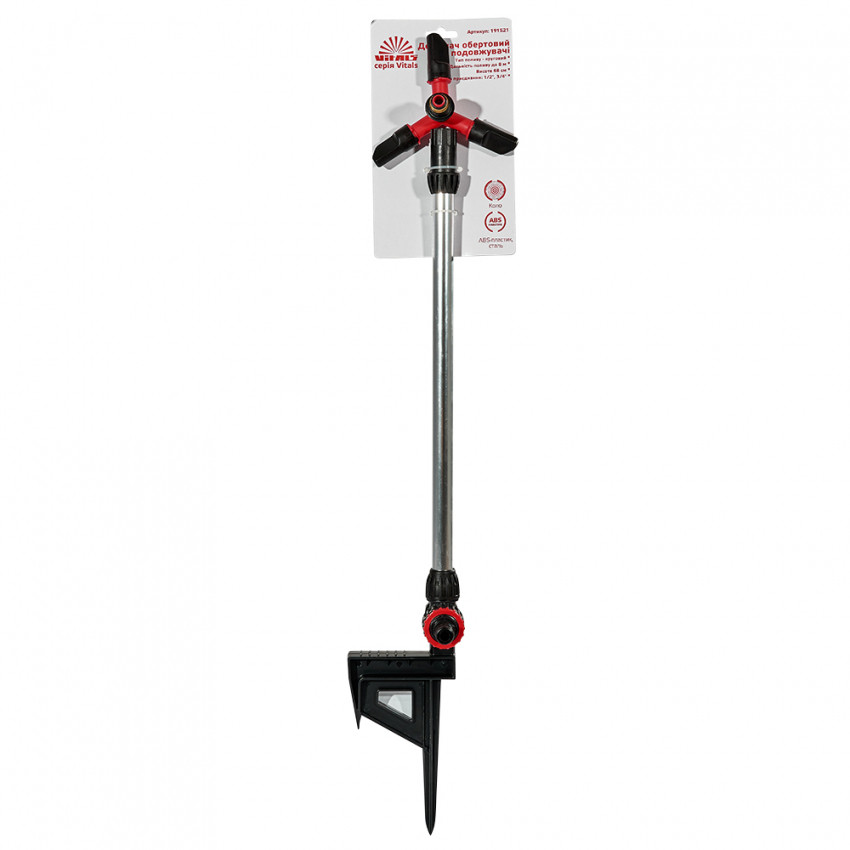 Дощувач круговий з головкою, що обертається, на штанзі Vitals використовується для стаціонарного поливу присадибних ділянок. Виготовлений із міцного АБС-пластику з металевою міцною штангою, забезпечує надійну та стабільну роботу зрошення.