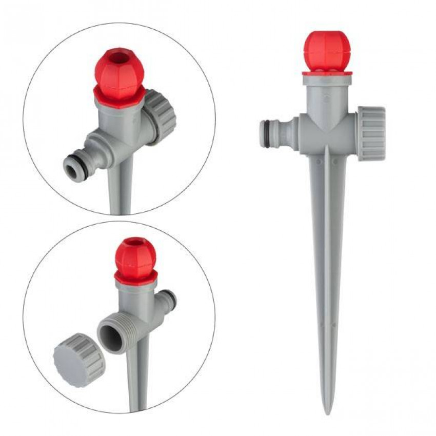 Зрошувач легко переносити з місця на місце і встановлювати стаціонарно на необхідній ділянці. Ніжка (кілок) дозволяє надійно зафіксувати дощовик у землі.