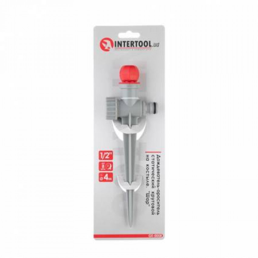 Статичний розпилювач води INTERTOOL GE-0058 створює ефект дрібного дощу та покриває зону до 4 метрів, з максимальним тиском у системі до 8 атм.