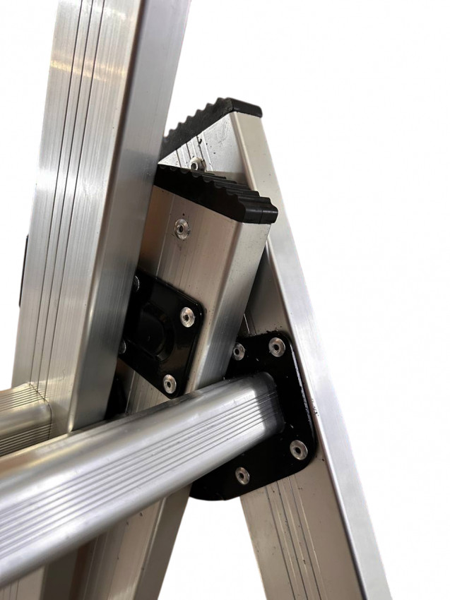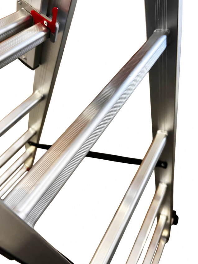 Універсальні 3-секційні драбини GTM - це надійні та універсальні драбини, які можна використовувати як приставні чи висувні драбини, так і як стремянки. Посилений профіль, сходинки з антиковзким профілем, додатковий стабілізатор та надійні металеві фіксуючі замки гарантують безпеку використання драбин GTM.