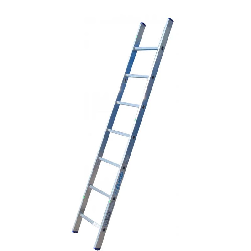 Драбина Elkop VHR односекційна універсальна з алюмінієвими сходами , які чудово підходять як для побутового, так і для професійного використання. Ця модель не має яких-небудь додаткових опор, тому притуляється до стіни або іншої вертикальної поверхні під кутом 65-75° відносно підлоги. Діапазон висот - 6-20 сходинок (2,6-6,3м). Протиковзні полімерні упори, рельєфні сходинки, з наскрізним монтажем в опори драбини.