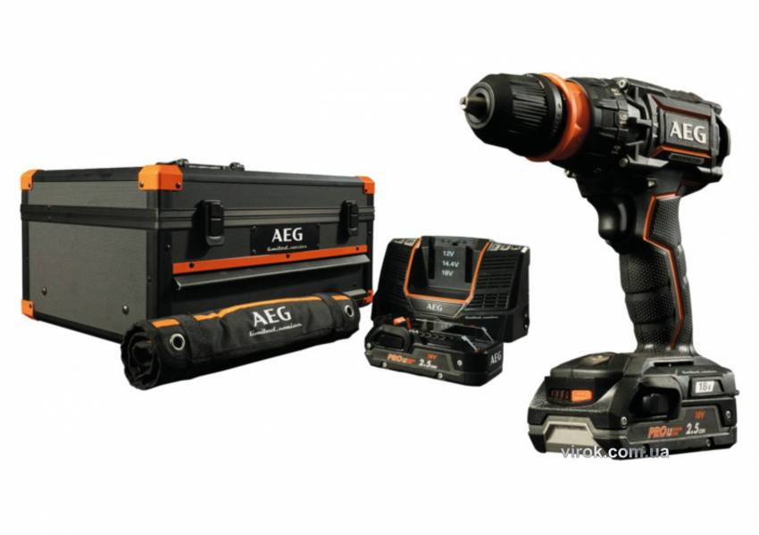 Дриль безщітка. акум. BSB18CBLLELI-252X AEG,18В, 2Х2.5Ач,0-550/0-2100об/хв, Ø45/14мм, 2кг, кейс