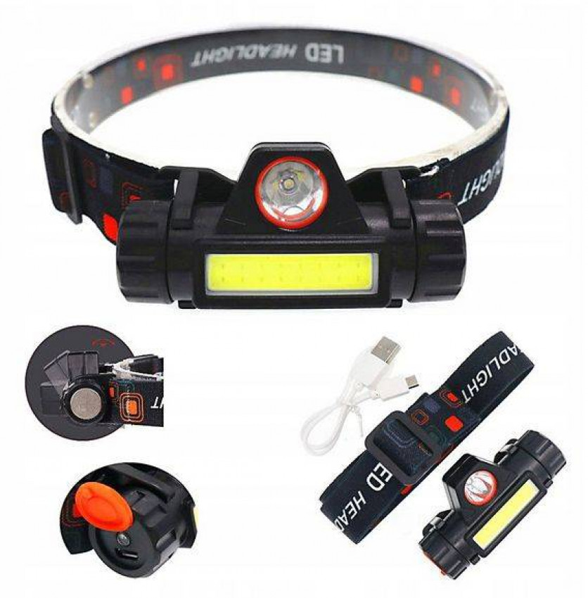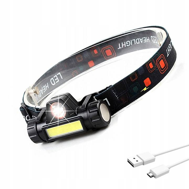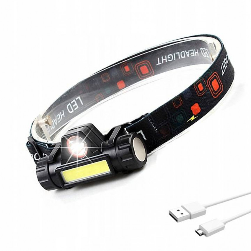 Ліхтарик LED з гумкою на голову 2 лампи USB