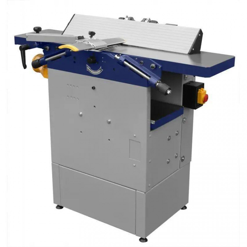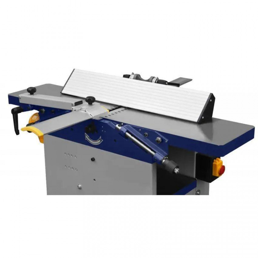 Ширина обробки становить 254 мм. Глибина зняття за один прохід - 2,5 мм фуганок і 3 мм рейсмус. Максимальна висота рейсмусування становить 180 мм. Сталеві ролики подачі розташовані близько до ножів, що дає змогу обробляти короткі заготовки. Для обробки під кутом є фугувальний упор з кутом нахилу 0-45°. Незважаючи на компактний розмір, цей фугувально-рейсмусовий верстат 250 мм має промислову потужність, що робить його вигідним рішенням для професійних майстерень.