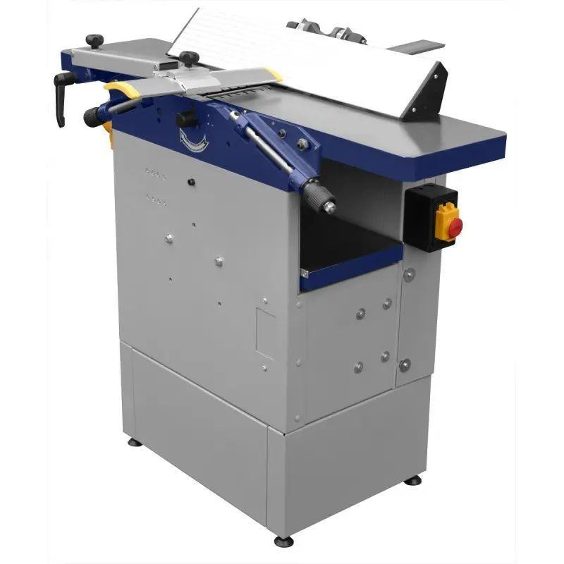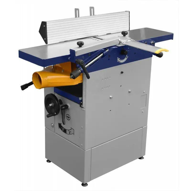 Фугувально-рейсмусовий верстат CORMAK PT250 400V - це комбіноване обладнання для обробки різних порід деревини з якісною чавунною конструкцією та простим регулюванням. Оснащений асинхронним трифазним двигуном потужністю 2 кВт/ 2,6 кВт, який забезпечує стабільну продуктивність та ефективну обробку твердих порід. 3-ножовий стругальний вал діаметром 75 мм має швидкість обертання 4000 об/хв, що дозволяє досягти високої якості поверхні.