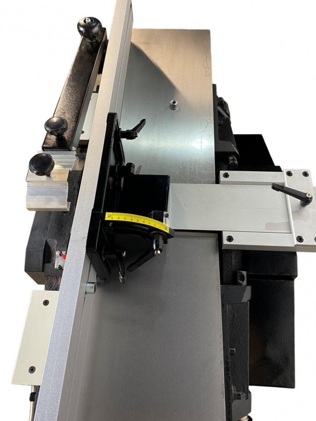 Стійка, міцна станина, чавунні столи і чітка шкала глибини забезпечують високу точність обробки. Стругальний вал оснащений 3 ножами і має великий діаметр, завдяки чому фугування відбувається з великою швидкістю. Перехід до рейсмуса здійснюється шляхом відкидання фугувального стола. Стіл для рейсмусування регулюється з обох боків і підтримується центральною колоною, що дає змогу досягти точного калібрування з двох сторін і працювати з важкими заготовками. Цей та інші комбіновані деревообробні верстати можна замовити на KMA.UA з доставкою по Україні.