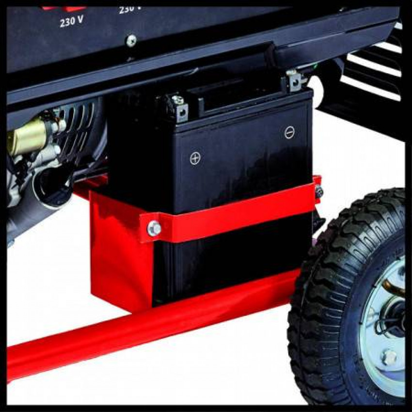 Про товар Бензиновий генератор Einhell, 230В/400В, 3300/5500 Вт, AVR, 4-х тактний, бак 25 л, макс. потужність 7 кВт, 2 розетки 220В, 1 розетка 400 В, синхронний, колеса, AVR, акумулятор для пуску в комплекті TC-PG 5500 WD