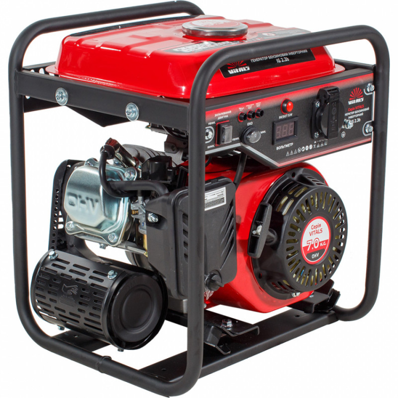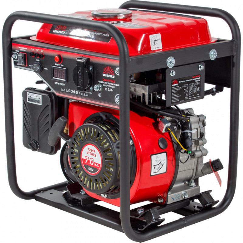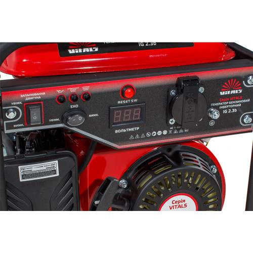 Бензиновий інверторний генератор Vitals IG 2.3b — це сучасний компактний переносний електричний агрегат, призначений для резервного або аварійного живлення побутових споживачів. Він виробляє однофазний змінний струм з правильною (чистою) синусоїдою напругою 230 В, частотою 50 Гц.