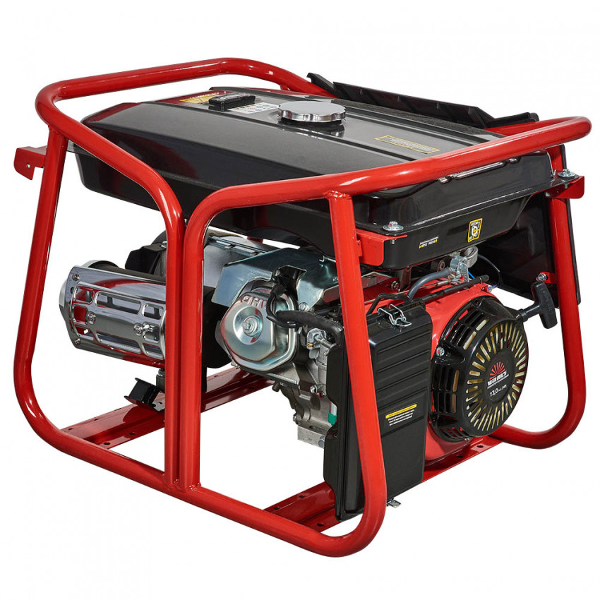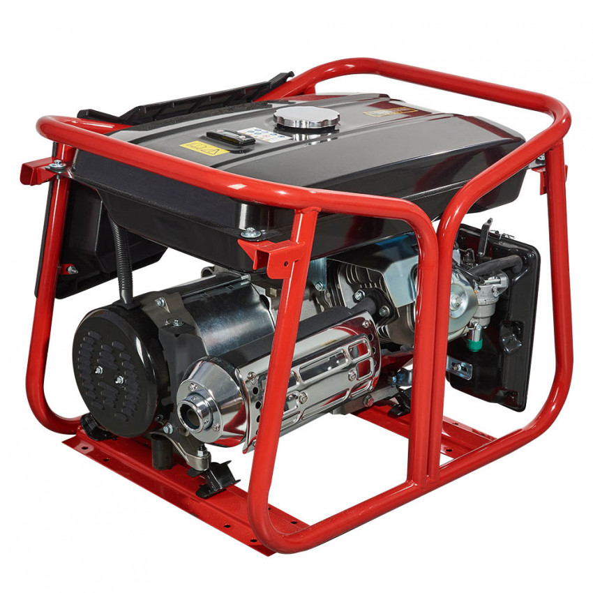 Монтаж вузлів та агрегатів на міцній металевій рамі надає конструкції генератора цілісності та компактності. Рама виконана із труб великого діаметру. Стійка на будь-яких твердих поверхнях, захищає від ударів, пошкоджень усі елементи агрегату. Міцний метал, з якого виготовлені труби, покритий антикорозійним складом. Це дозволяє встановлювати електростанцію в місцях з високою вологістю. '>Двигун кріпиться до рами на демпферних опорах, які відчутно знижують вібрацію. Рама також оснащена гумовими опорами, які додатково гасять вібрацію, запобігають мимовільному переміщенню агрегату під час роботи.