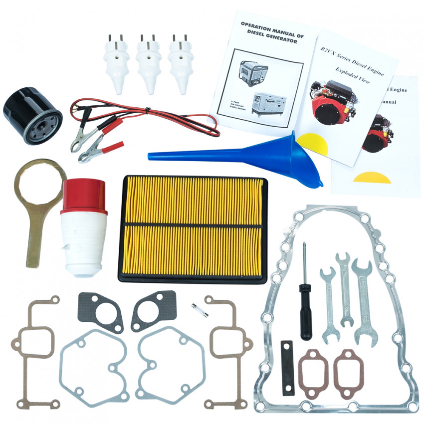 система ATS (автоматичне введення резерву, Schneider контактори) електростартер синхронний тип альтернатора автоматичний регулятор напруги AVR передпусковий підігрівач датчик рівня масла у двигуні цифровий дисплей лічильник мотогодин колеса для транспортування