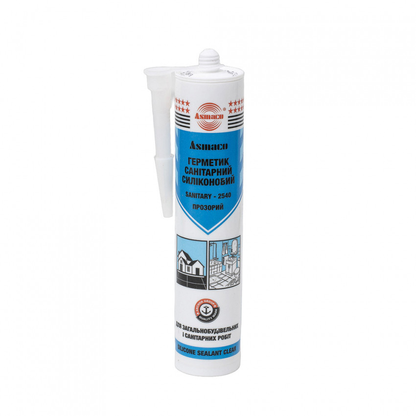 Герметик силіконовий санітарний прозорий 280мл (310г) ОАЕ ASMACO (2732201) це однокомпонентний герметик ацетокси-групи, який затверджується при взаємодії з вологою при кімнатній температурі та формує гнучкий еластомерний продукт. Широко застосовується у будівництві та склінні, замазка та герметизація швів та з'єднань у санітарних цілях, закріплення елементів панелі, структурування панельних систем, герметизація при зовнішніх роботах. Легко наноситься та забезпечує відмінну адгезію до непористих підкладок. Є стійким до озону, УФ-радіації та екстремальних температур. Можна застосовувати за будь-якої температури.