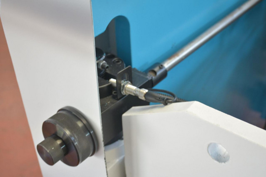 - Моторизований задній упор по осі X, який можна запрограмувати з лінійним ковзанням і управлінням з ЧПК, відстань 600 мм і точність обробки 0,2 мм.
