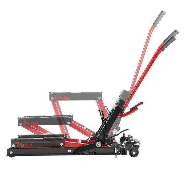Гідравлічний підйомник для мотоциклів та квадроциклів REDATS LS-570 - це зручне та надійне обладнання для проведення ремонтних робіт і технічного обслуговування мотоциклів, скутерів, квадроциклів та інших транспортних засобів подібного типу, вантажопідйомність якого становить 680 кг. Висота основи 120 мм, максимальна висота підйому - 385 мм. Завдяки гідравлічній системі підйом і опускання плавні та контрольовані. Керування підйомом здійснюється за допомогою педалі.