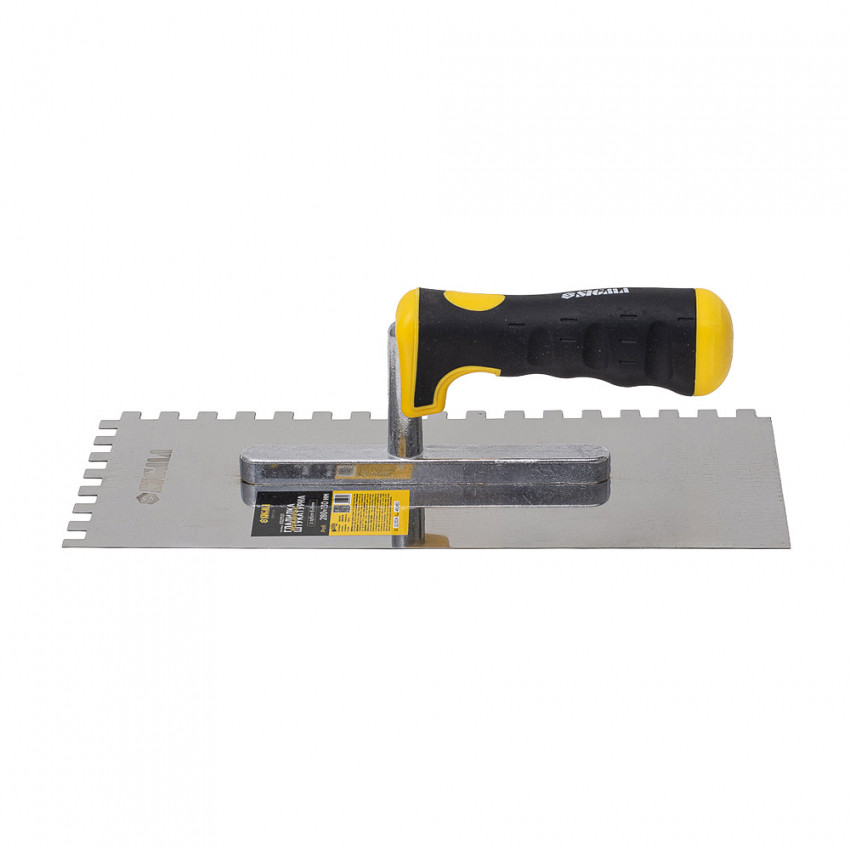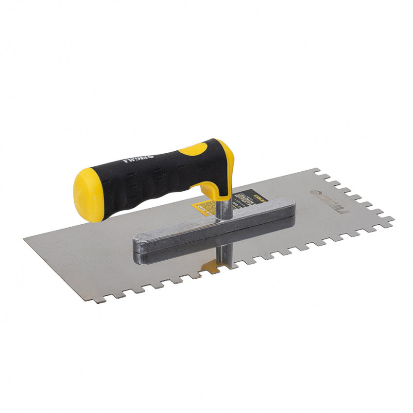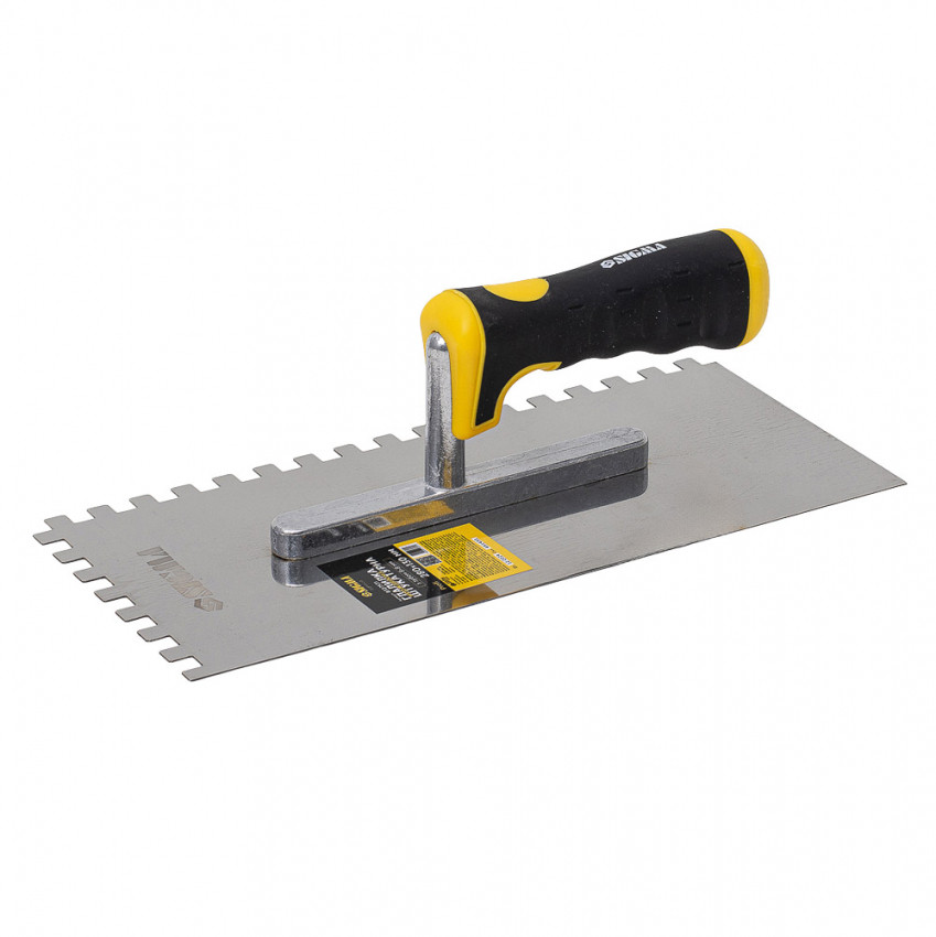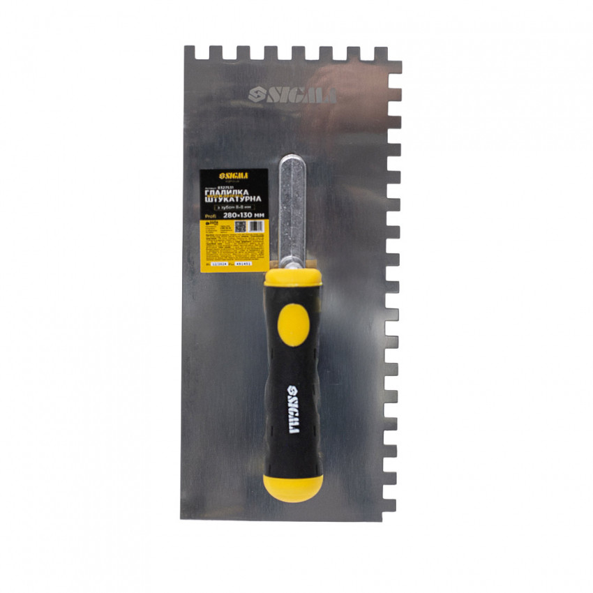 Гладилка нержавіюча штукатурна з зубом Profi 280мм×130мм 8×8мм Sigma (8327531) призначена для розгладження відштукатуреної поверхні, а також для рівномірного нанесення клейового кладці плитки та вирівнювання стін за рахунок використання різних розмірів зубця.
