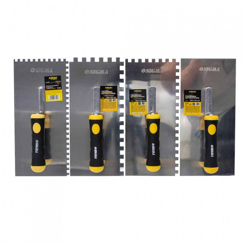 Гладилка нержавіюча штукатурна Profi 280мм×130мм Sigma (8327421) призначена для розгладження матеріалу, вирівнювання відштукатуреної поверхні (розчину) після його затвердіння, надання поверхні привабливого зовнішнього вигляду.