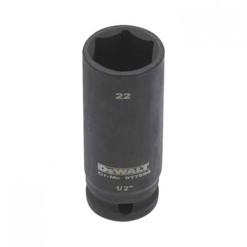 Виробник DeWALT; Тип Головка торцева ударна IMPACT посадкове місце 1/2; Розмір 22 мм подовжена; Використовується з усіма типами ударних гайковертів.
