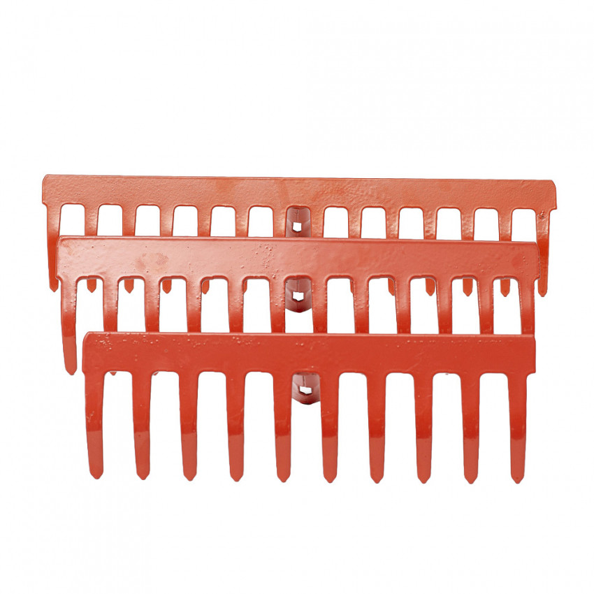 Граблі мають ряд прямих зубів, розташованих поперек робочої планки. За рахунок такого розташування збільшується площа обробки поверхні. Забезпечується легкість формування грядок і рядів для посіву насіння рослин, без зміни лінії посадки.