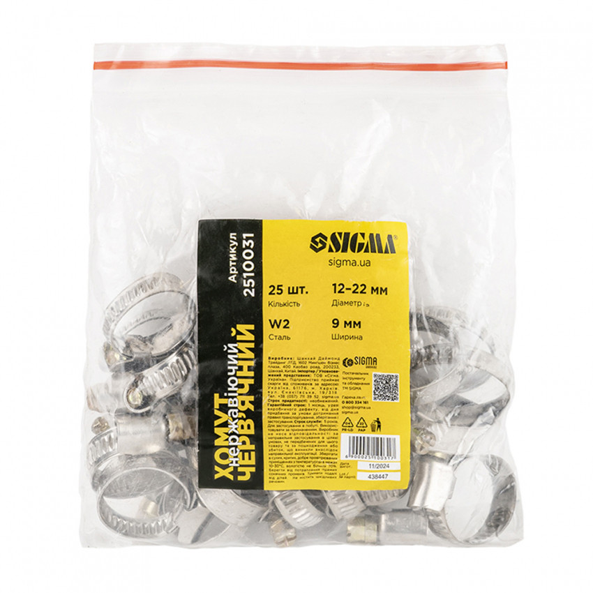 Відгуки Хомут черв'ячний нержавіючий 9мм D12-22мм 25шт Sigma (2510031)