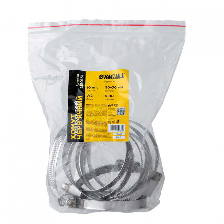 Відгуки Хомут черв'ячний нержавіючий 9мм D50-70мм 10шт Sigma (2510131)
