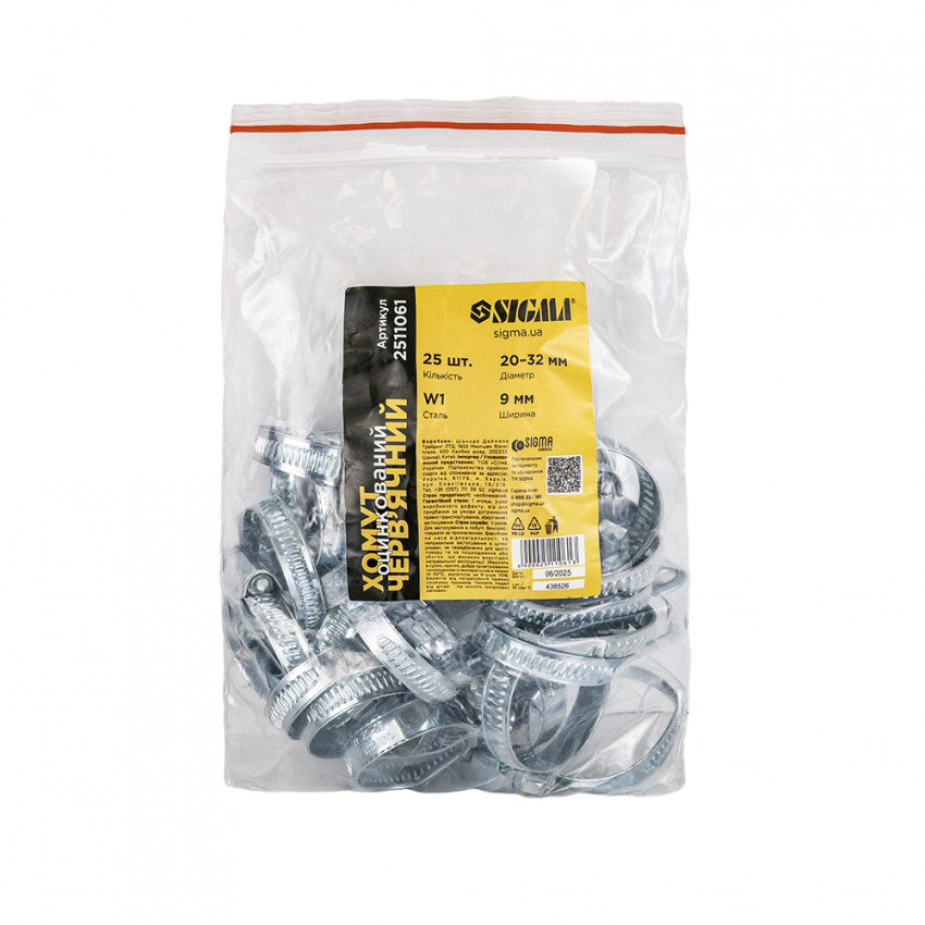 Про товар Хомут черв'ячний оцинкований 9мм D20-32мм 25шт Sigma (2511061)