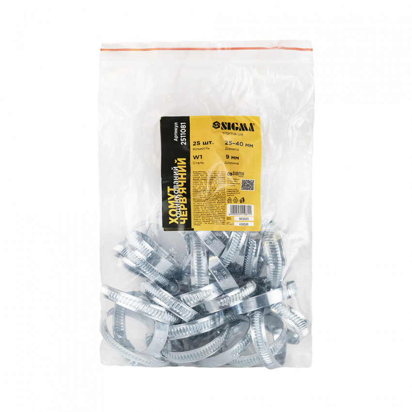 Про товар Хомут черв'ячний оцинкований 9мм D25-40мм 25шт Sigma (2511081)