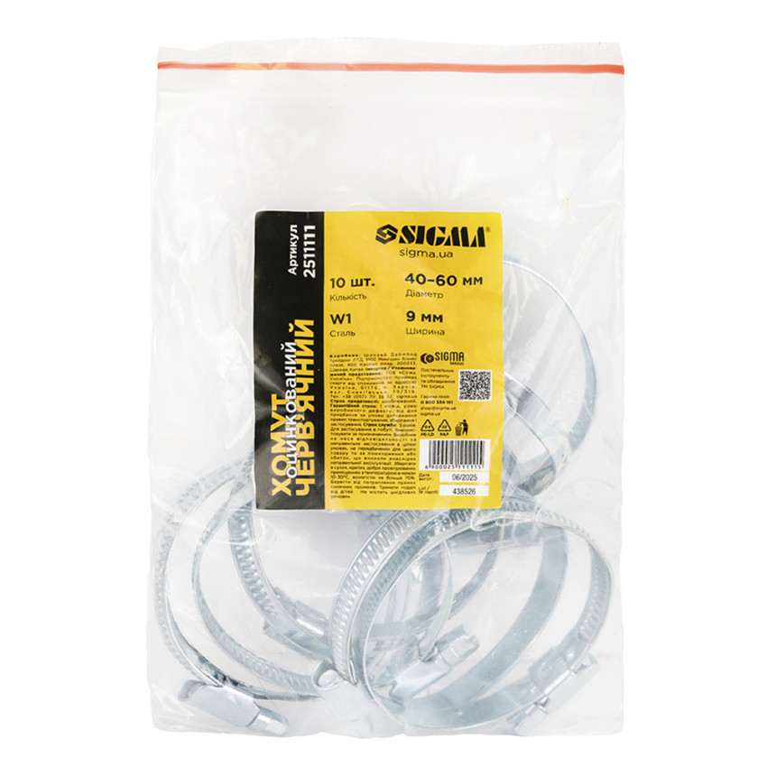 Характеристики Хомут черв'ячний оцинкований 9мм D40-60мм 10шт Sigma (2511111)
