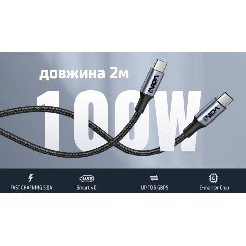 Про товар Кабель VOIN Type C - Type C 5А/20V, QC4.0/PD 2m, black (швидка зарядка / передача даних) (VP-3502C BK)