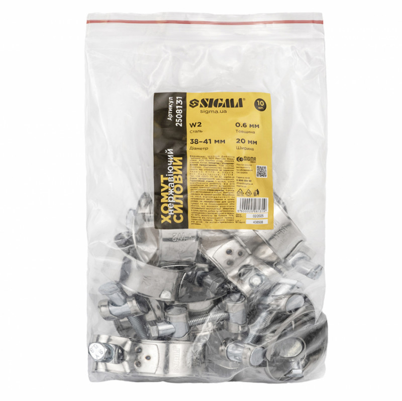 Хомут силовий нержавіючий 20мм Ø38-41мм SIGMA (2508131)