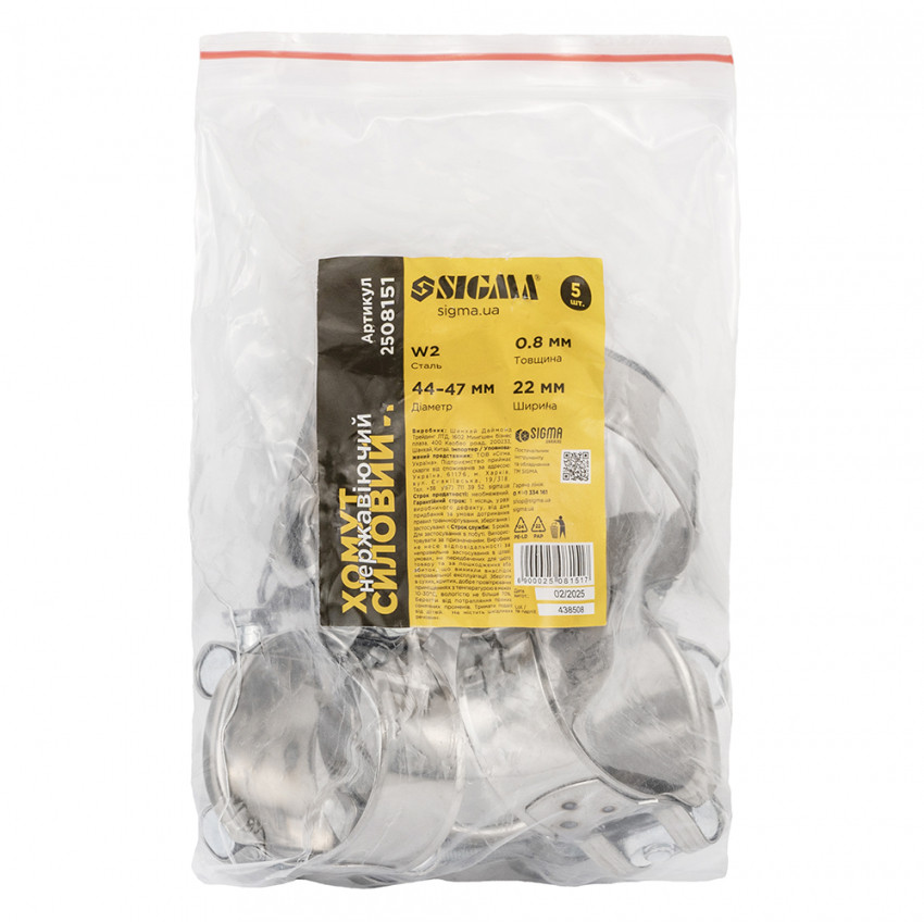 Хомут силовий нержавіючий 22мм Ø44-47мм SIGMA (2508151)
