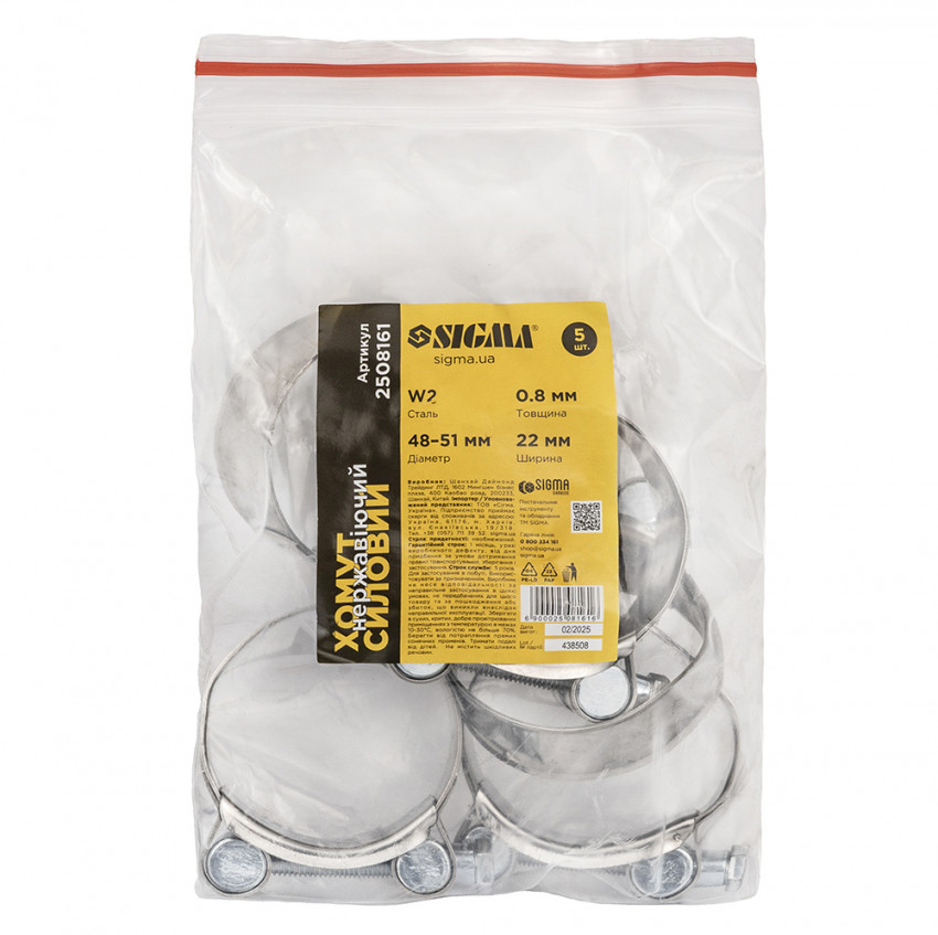 Хомут силовий нержавіючий 22мм Ø48-51мм SIGMA (2508161)
