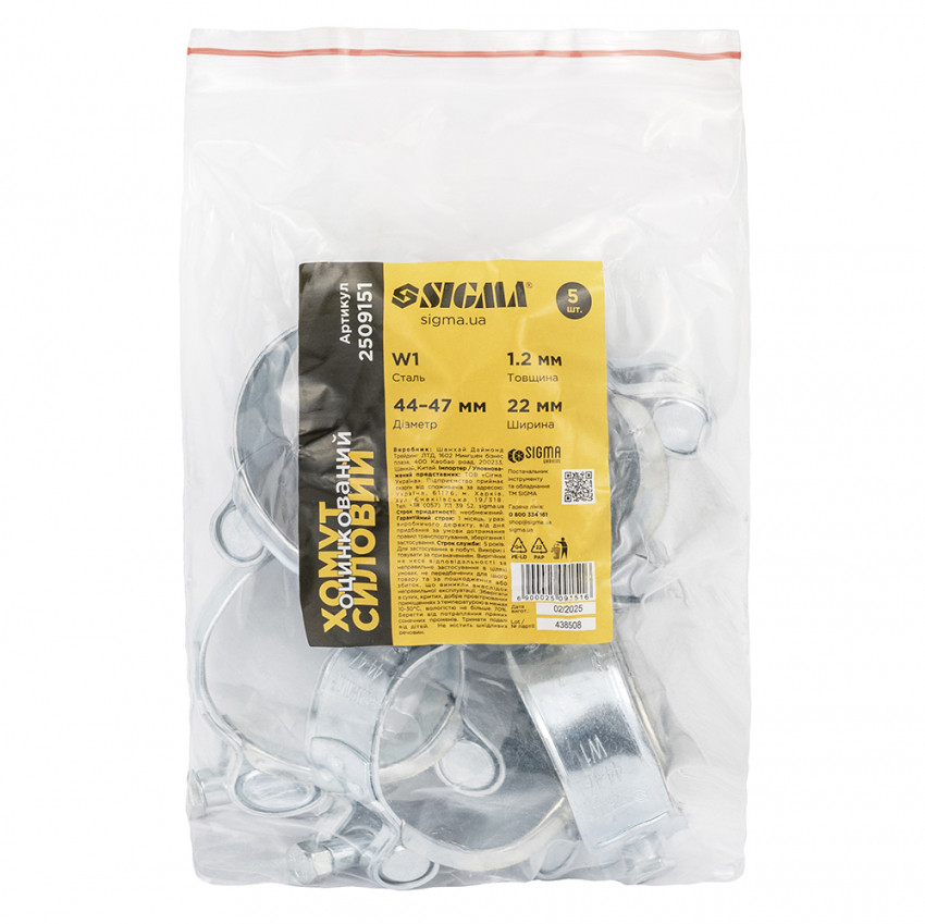 Хомут силовий оцинкований 22мм Ø44-47мм SIGMA (2509151)