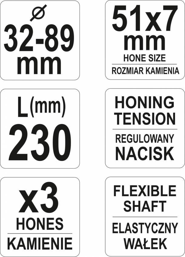 Хон для розточування циліндрів Ø= 32-89 мм YATO регульований з 3 камінням-51х7 мм, загальна l= 230 мм