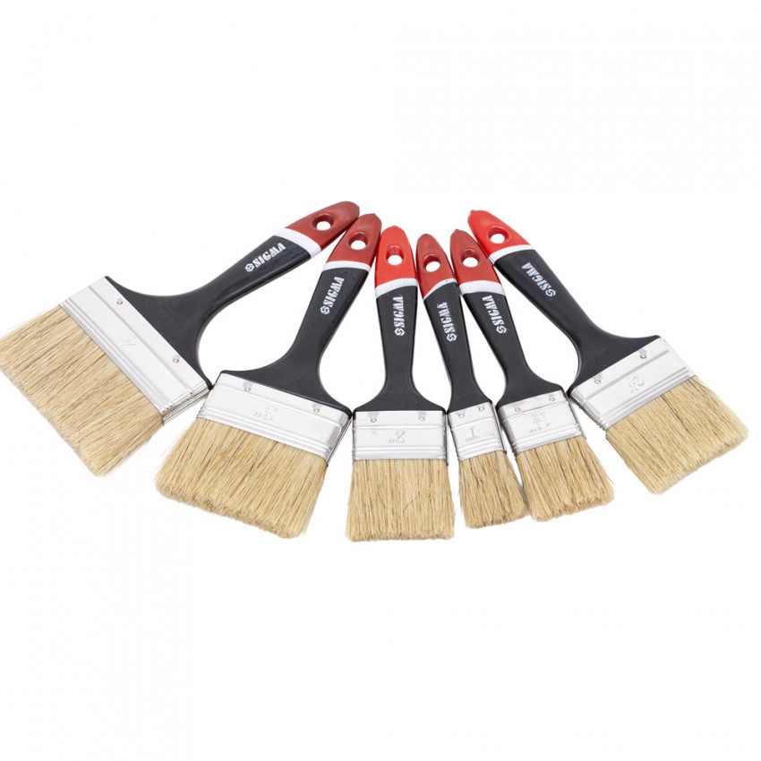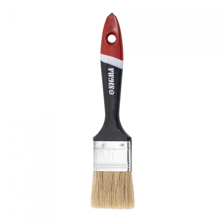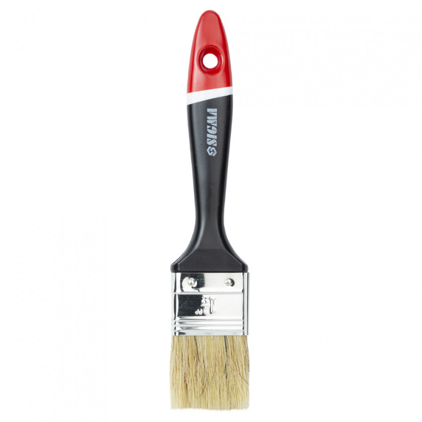 Пензель флейцевий 'Англійський' 1.5' SIGMA (8302521) виготовлений з натуральної щетини для роботи з усіма видами лакофарбової продукції, в тому числі з агресивними. Призначена для внутрішніх та зовнішніх робіт. Перевагами даного пензля є: універсальність у роботі з будь-якими ЛКМ, ергономічна ручка з отвором для зберігання, рівномірне нанесення матеріалу на поверхню, стійкість до розчинників.