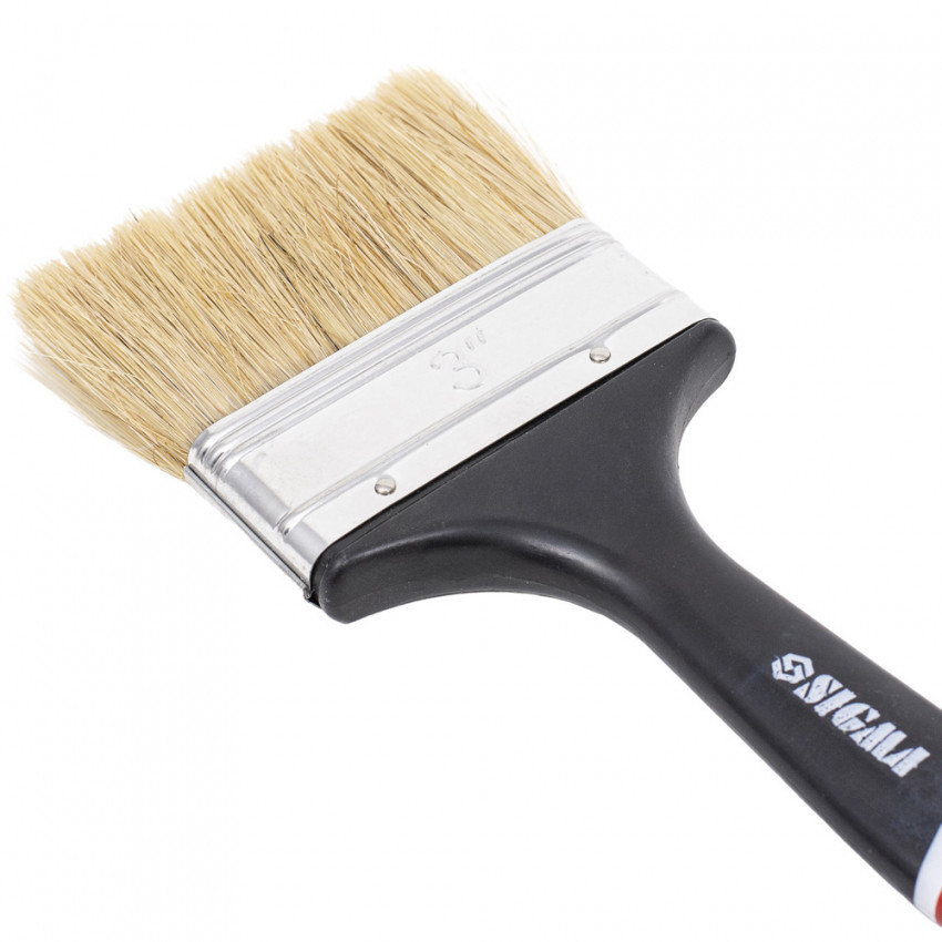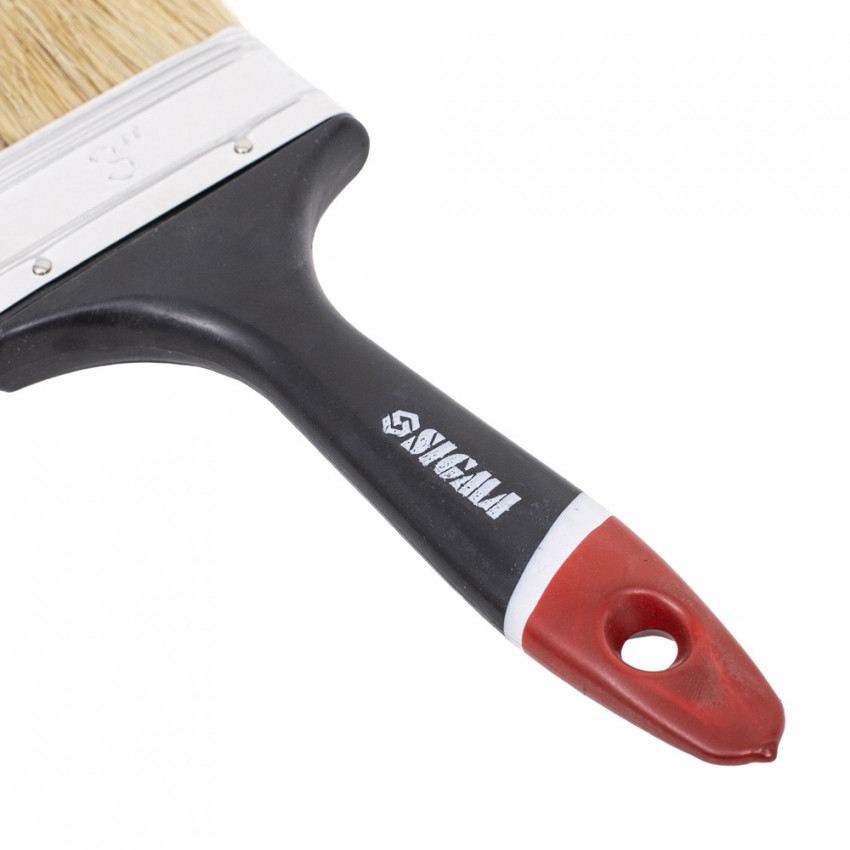 Пензель флейцевий 'Англійський' 3' SIGMA (8302551) виготовлений з натуральної щетини для роботи з усіма видами лакофарбової продукції, в тому числі з агресивними. Призначена для внутрішніх та зовнішніх робіт. Перевагами даного пензля є: універсальність у роботі з будь-якими ЛКМ, ергономічна ручка з отвором для зберігання, рівномірне нанесення матеріалу на поверхню, стійкість до розчинників.